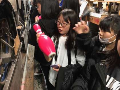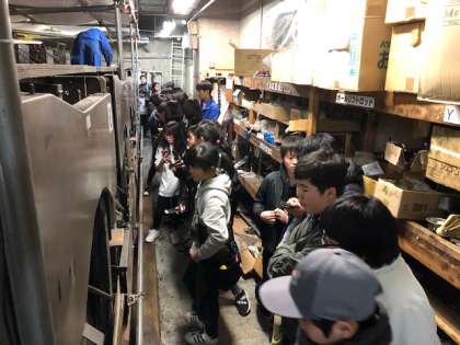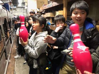2ゲームを終えて、次はボウリング場の裏側を特別に見せていただきます。初めての体験に、みんな驚きを隠せません。