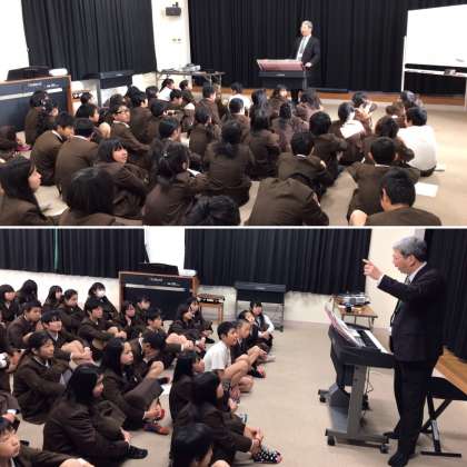 本日6時間目に6年生が合同で、明後日の学習参観で披露する歌の練習をしました。
