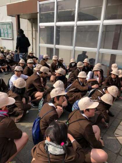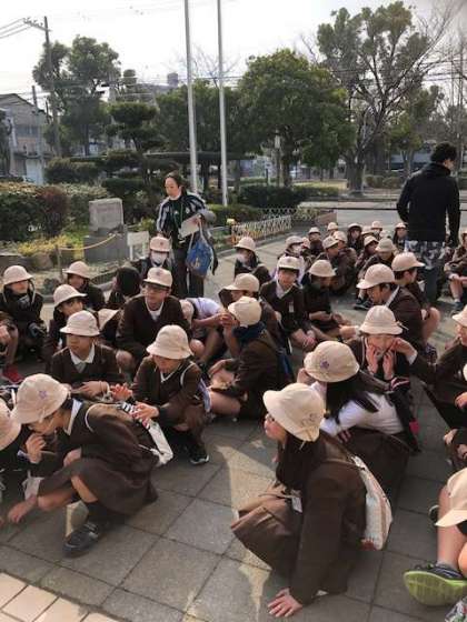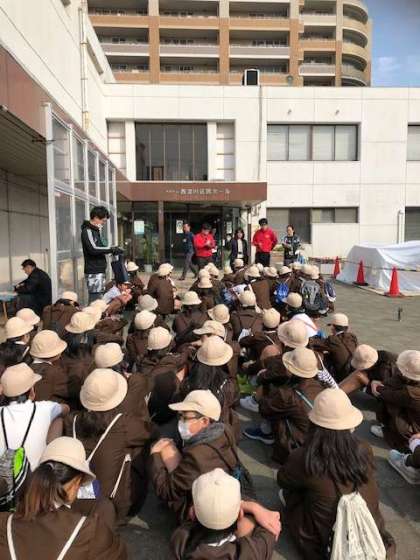 今日は、西淀川区民センターで、防災サバイバルの体験学習に来ました。どんな学習か、とても楽しみにしているようです。
