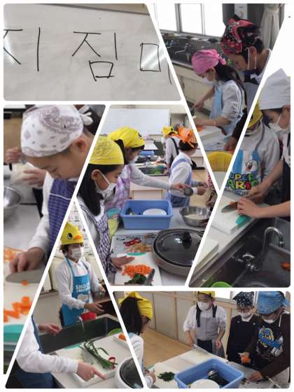 今日は韓国の食文化にふれるために、チヂミ作りを行いました。5年生は今までの経験を生かし、安全に気をつけながら効率よく調理実習を行うことができました。