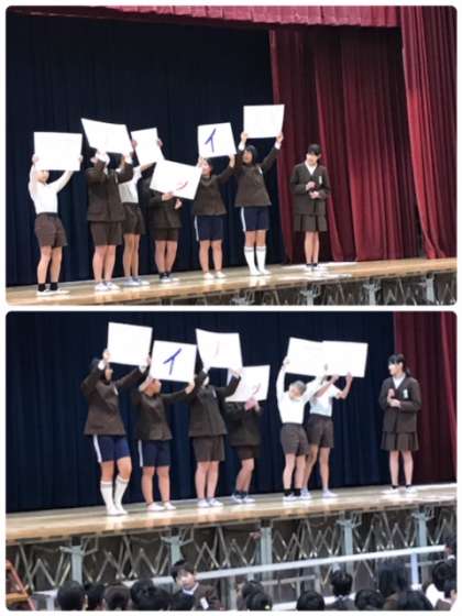 文字の並べ替えクイズでした。各色各班ごとで相談して正解していました。