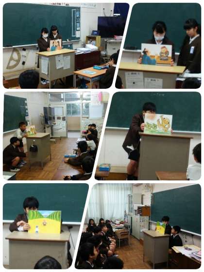 先週に続き、図書委員会の児童が各クラスに入り、紙芝居の読み聞かせをしました。
