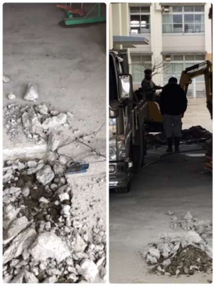 本日昼頃より、給水管の破損のため、トイレや水道がうまく使えなくなりました。
