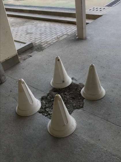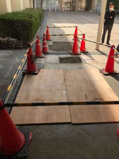 後日、きれいに埋め戻す工事が終わるまでは、通れない場所がありますが、明日からは平常通り授業を行います。