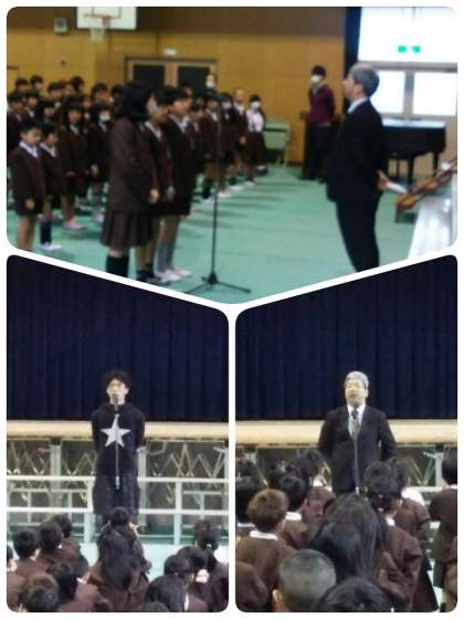 まず、校長先生から今から8年前の3月11日に起こった東日本大震災についてのお話と、まもなく卒業を迎える6年生へ感謝の気持ちを表しましょうというお話をしていただきました。