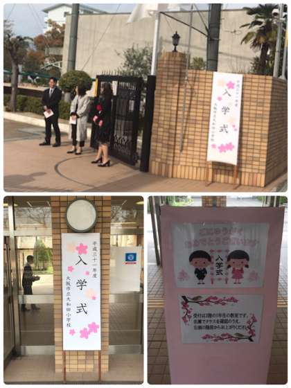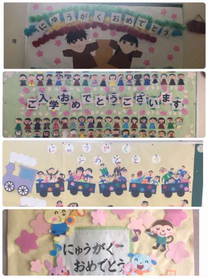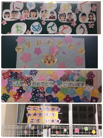 校舎内も入学お祝いの掲示物がたくさん飾られています。