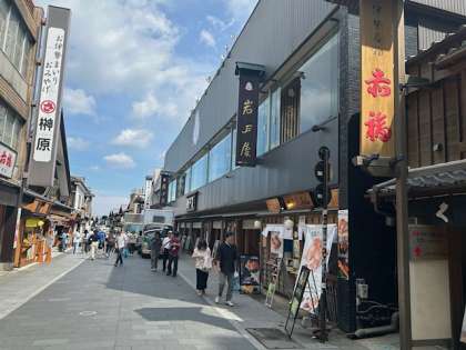 おかげ横丁は、伊勢神宮に参拝に来た人をもてなす江戸時代の街並みを現代風に再現した町です。観光客もたくさん来ています。