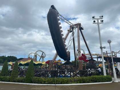 通り雨がありましたが、すぐに止み、涼しくなりました。アトラクションやお土産探しなど、まだまだ楽しんでいます。