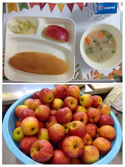 今日は、りんごやさつまいもを用いた、秋を感じる献立でした。