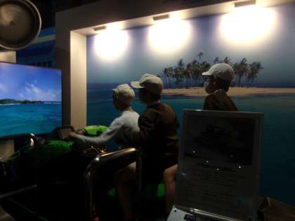 博物館の中にある「カワサキワールド」では、船のほかに、飛行機、新幹線、バイクなど様々な乗り物が展示されていています。館内アトラクションでは運転したり、映像を楽しんだりすることができました。