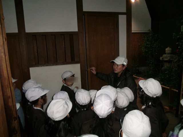 3年生が、くらしの今昔館に社会見学に行きました。江戸時代の街並みを再現した建物を見て、「家の中が暗い」「水道がない」など現代の家と比べて、昔のくらしを考えることができました。また、たくさんの店が並んだ天神橋筋商店街も見学し、スーパーマーケットとの違いやお店の工夫について考えました。