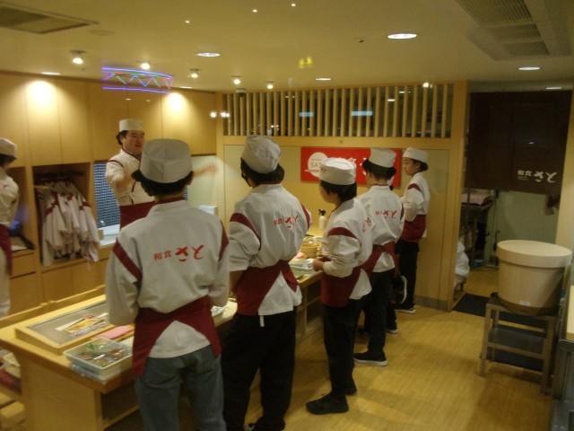 ユニホームに着替えて仕事を始めます。真剣な表情で説明を聞いていました。