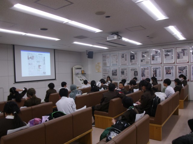 読売新聞大阪本社に社会見学に行きました。新聞ができるまでの過程を学びました。一つの新聞を作るには大勢の記者が取材に向かい、持ち寄った記事を会議にかけて作っていきます。大阪だけではなく、日本全国と一斉に会議をするそうです。また、地下の工場では、新聞が印刷される様子を見学し、次々と印刷され、配達先ごとに仕分けられていくことに驚きました。