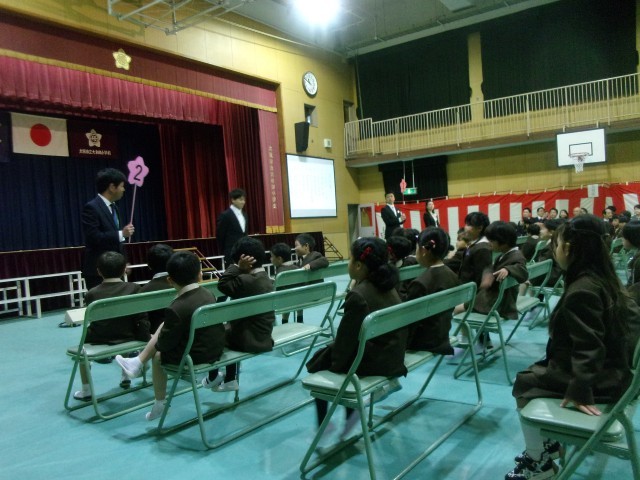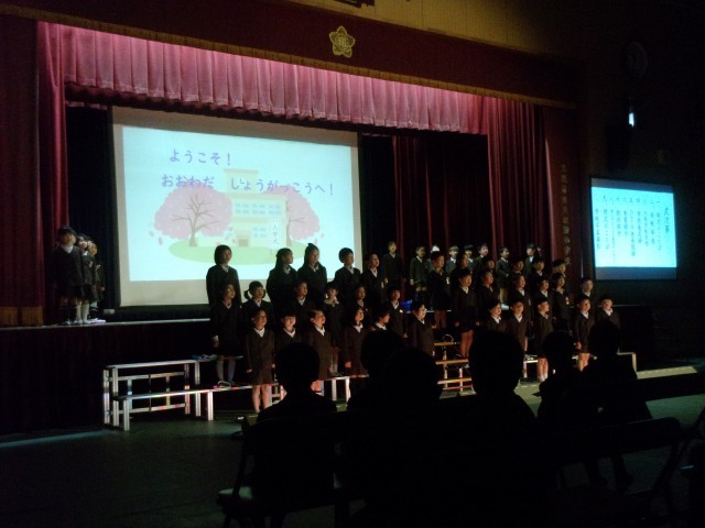 4月7日、入学式を行いました。65名のかわいい1年生が入学しました。入学式では、新2年生の歓迎のセレモニーもあり、1年生はしっかりと見てくれていました。