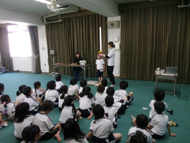 はじめに養護教諭から保健室の紹介と、保健室に来るときの約束について保健指導がありました。1年生はしっかりと話を聞いていました。