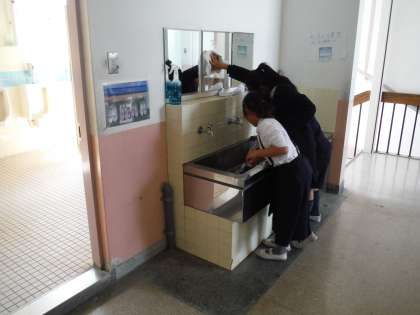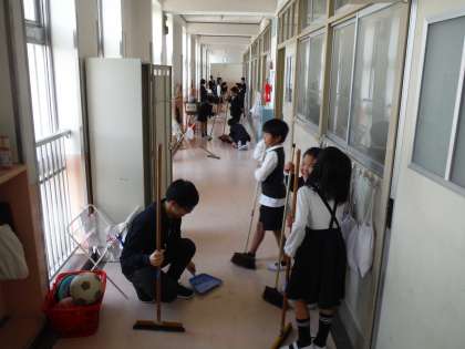 そうじの時間です。きれいな学校になるよう、がんばっています。