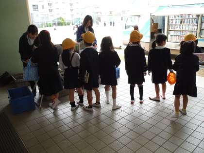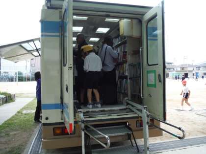 月一回の自動車文庫の日です。 今日はどんな本を借りようかな。