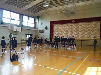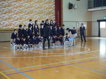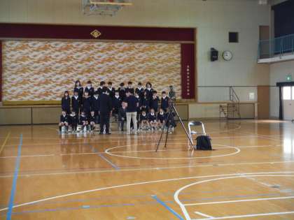 4月22日(月)、朝から学級写真の撮影をしました。 まずは、写真屋さんの指示で撮影準備に入ります。