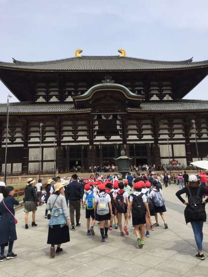 行き先は奈良公園方面です。本日は良いお天気で、暑いぐらいです。