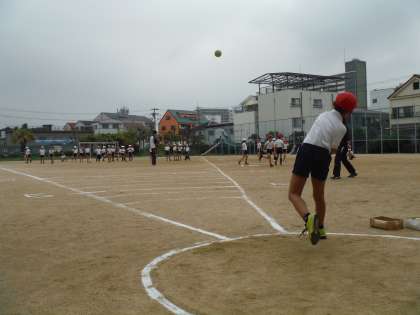 体力テスト1 公開日 2019/04/25 更新日 2019/04/25 お知らせ 3年生のソフトボール投げです。 前日の雨の影響はほとんどなく、実施できました。 準備運動をしたら、一人ひとりの測定です。