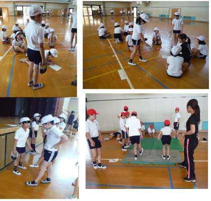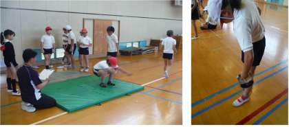 6年生は、体力テストをしていました。握力と立ち幅跳びです。