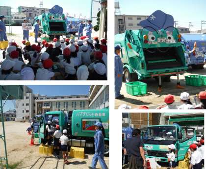 連休明けの学校8 公開日 2019/05/07 更新日 2019/05/07 お知らせ 4年生の出前講座です。 大阪市環境局西北環境事業センターの方にお越しいただきました。 パッカー車を持ってきていただき、実際に機械が動く様子を見たり、紙芝居を聞いたりして、ごみ処理の仕方やごみを減らす工夫について学びました。