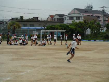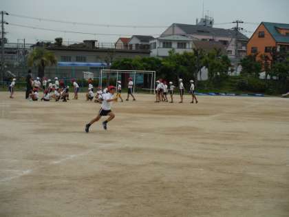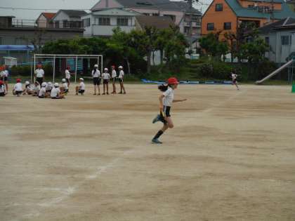 リレーの学習です。 次の走者にうまくバトンを渡せたかな。