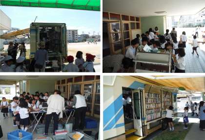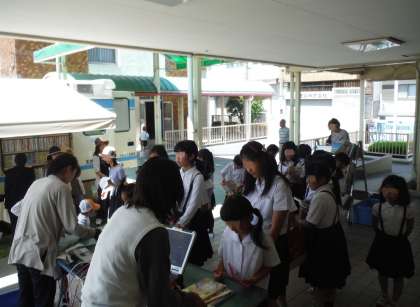 今月の自動車文庫です。今日もたくさんの児童が集まってきました。