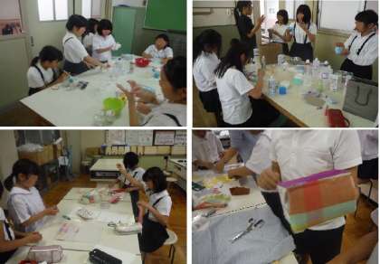 スライムを作ったり(イラスト工作クラブ)、牛乳パックに好きな布を張り付けて小物入れを作ったり(手芸料理クラブ)、スーパーボールを作ったり(科学クラブ)しました。