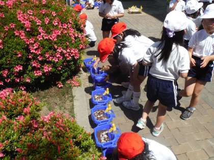 5月22日アサガオの種植え2 公開日 2019/05/22 更新日 2019/05/22 お知らせ 鉢を花壇の周りに置いたら、本日の作業は終了です。これからは、定期的な水やりをしていくことになります。芽が出るのはいつかなあ。