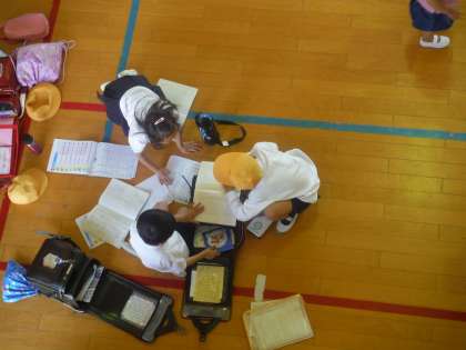 話し合いが終わるのを待つ間に、宿題を済ませる児童もいました。