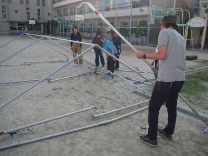 5月22日 職員作業 公開日 2019/05/23 更新日 2019/05/23 お知らせ PTA予算総会後の職員作業です。 運動会の練習時にちょっと休憩するためのテントを立てたり、入退場門を設置したりしました。