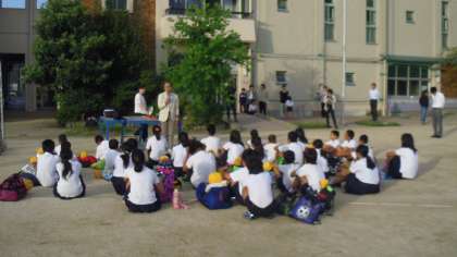 6年生全員が、出発式を終え、広島へ修学旅行に出発しました。