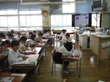 5月28日その1 公開日 2019/05/28 更新日 2019/05/28 お知らせ 1年生:ひらがなの練習。最初に鉛筆を置く場所を確認して、丁寧に書きます。 3年生:複数指導で算数の学習をしています。 学校放送を利用して学習することもあります。(社会)