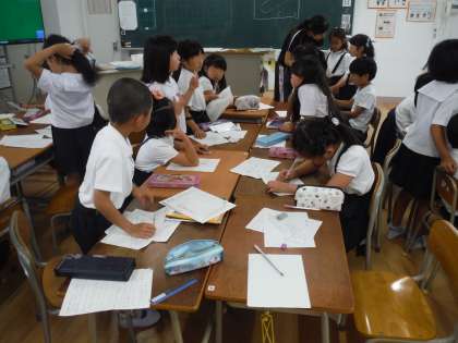 2年生:町たんけんの計画を立てています。どんなふうに回ろうかな。