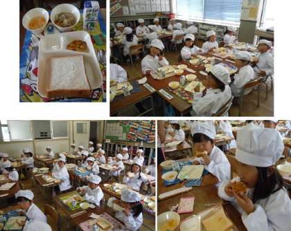 給食です。今日は全体練習もあったので、おなかがすいたのではないでしょうか。