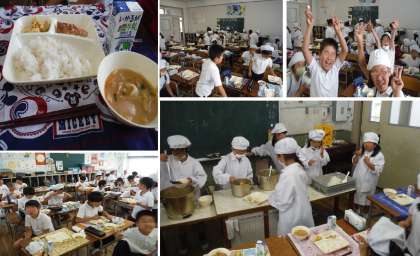 和風の献立です。赤魚は、たれがいい感じにしみ込んでいて、おいしかったです。あるクラスでは、お魚の醤油だれだけを求めて列を作っていました。