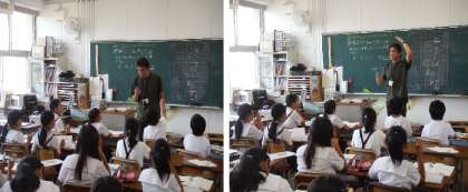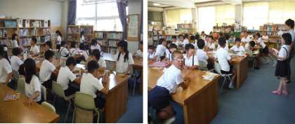 もう一方は図書の様子です。当番の児童が、なぞなぞの本から問題を出す時間が少しありました。
