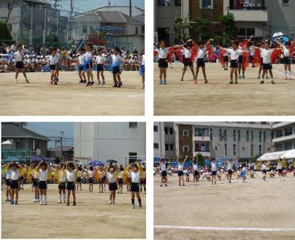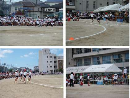 運動会としては初めて、カーブのあるコースを走ります。カーブの走り方で差がついたり縮まったりしました。