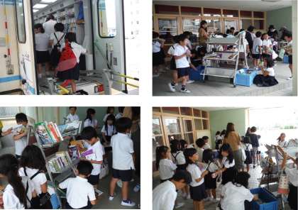今日の自動車文庫。前回よりも利用する人数が増え多いように感じました。みんなどんな本を借りたのでしょうか。