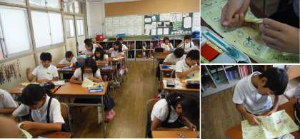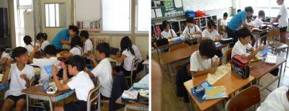 裁縫のボタン付けです。ボタンの上下の向きにも気をつけて、慎重に縫っていきます。今回も縫い方を教えてあげる様子が見られました。