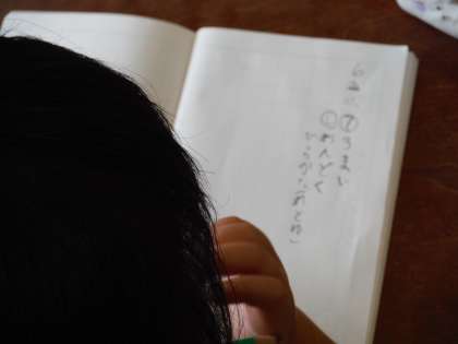 1年生が自分で連絡帳を書く練習をしていました。罫線に合わせて書くのは難しそうですが、丁寧に頑張って書きました。