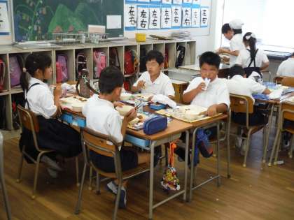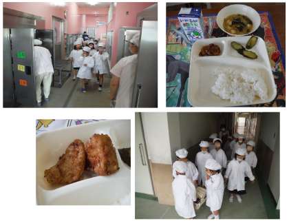 【ごはん・牛乳・豚肉の香味あげ・みそ汁・きゅうりの甘酢づけ】