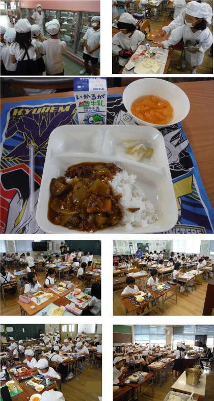 一学期最後の給食です。今日の天気は曇りですが、カレーで「気分は快晴」と行きたいですね。