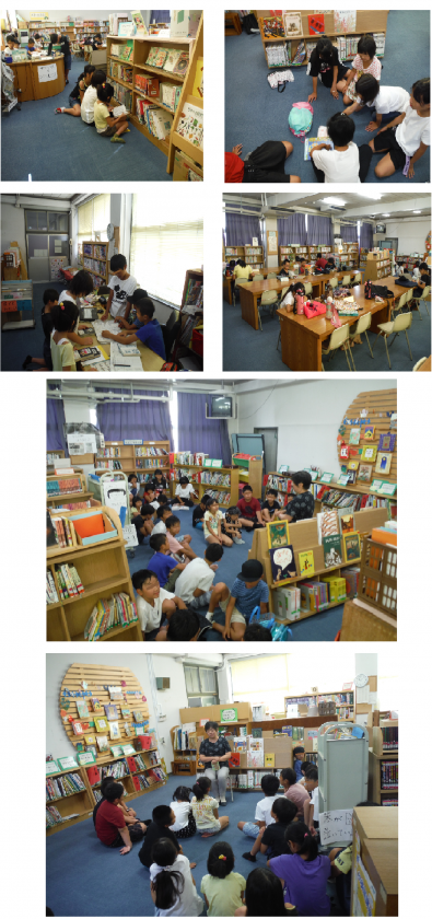 今日は図書館補助員さんによるお話し会があり、みんな静かに聞いていました。