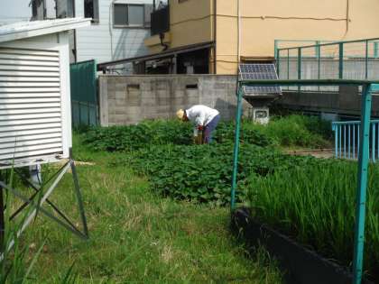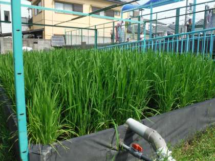 稲がずいぶん生長しましたが、ほかの草も伸びてきています。必要な手入れを今日もボランティアでしてくださっています。いつもありがとうございます。