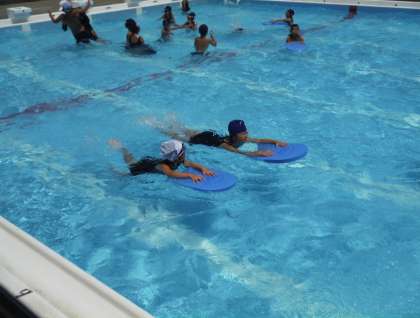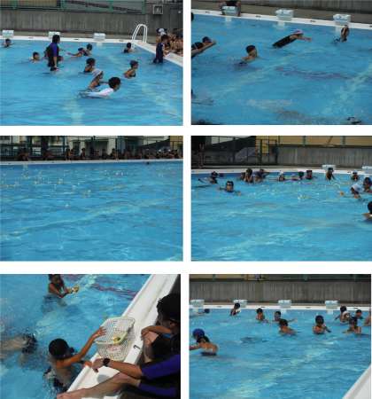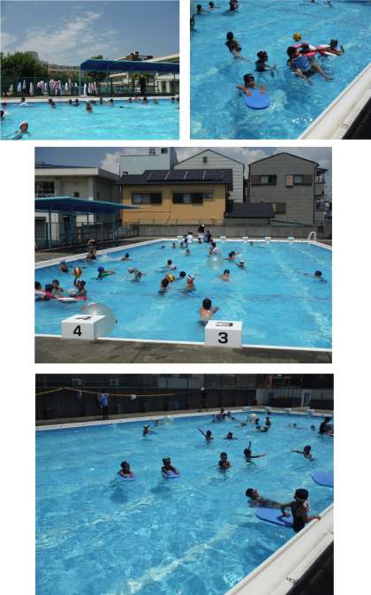 7月25日 プール開放 公開日 2019/07/25 更新日 2019/07/25 お知らせ 低学年の部です。自由遊びの時間には、ビート版を背にして仰向けで浮かんだり、大きいボールで友だちと遊んだりしていました。