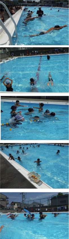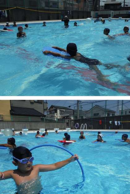 今日は、友だちとあおむけで浮かんだり、泳いだりして楽しむ児童が見られました。