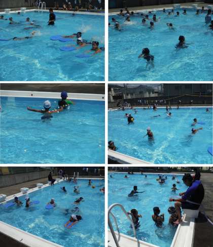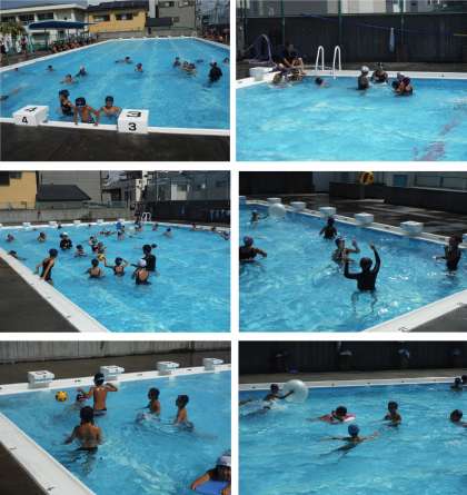 今日も天気に恵まれ、プールが心地よい一日です。参加した児童の笑顔が、日光に負けないぐらい輝いていました。