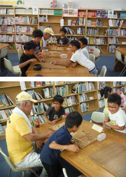 「囲碁・将棋」コーナーです。それぞれに相手を見つけて、対戦します。次の一手や、さらにその先を考える真剣さが伝わってきました。。